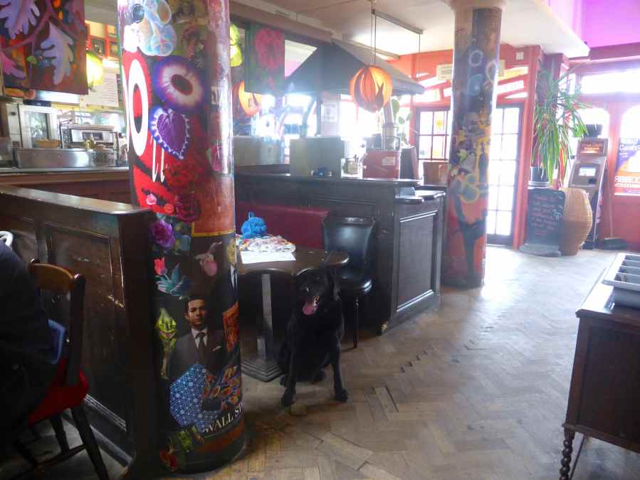 Milton in Belgian Bar drinking water