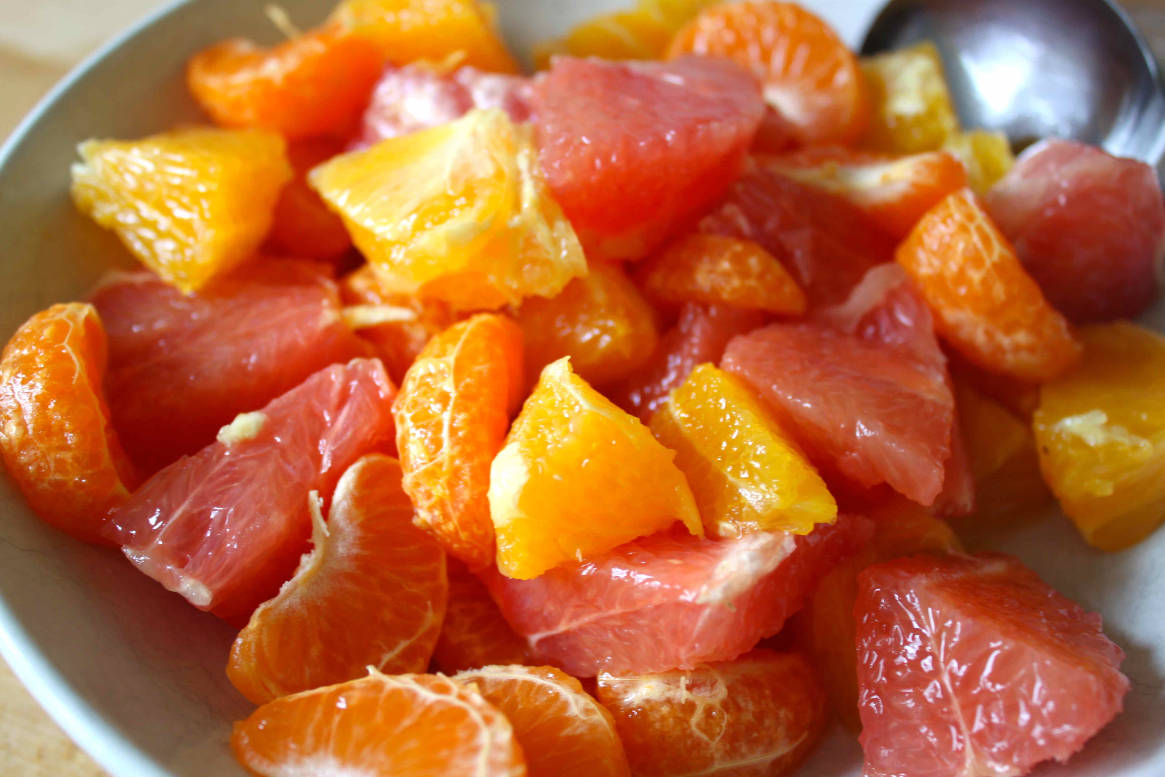 A simple fruit platter for breakfast: watermelon, red grapes, pink grapefruit and orange. Eaten in the sunshine and every mouthful was a complete pleasure.