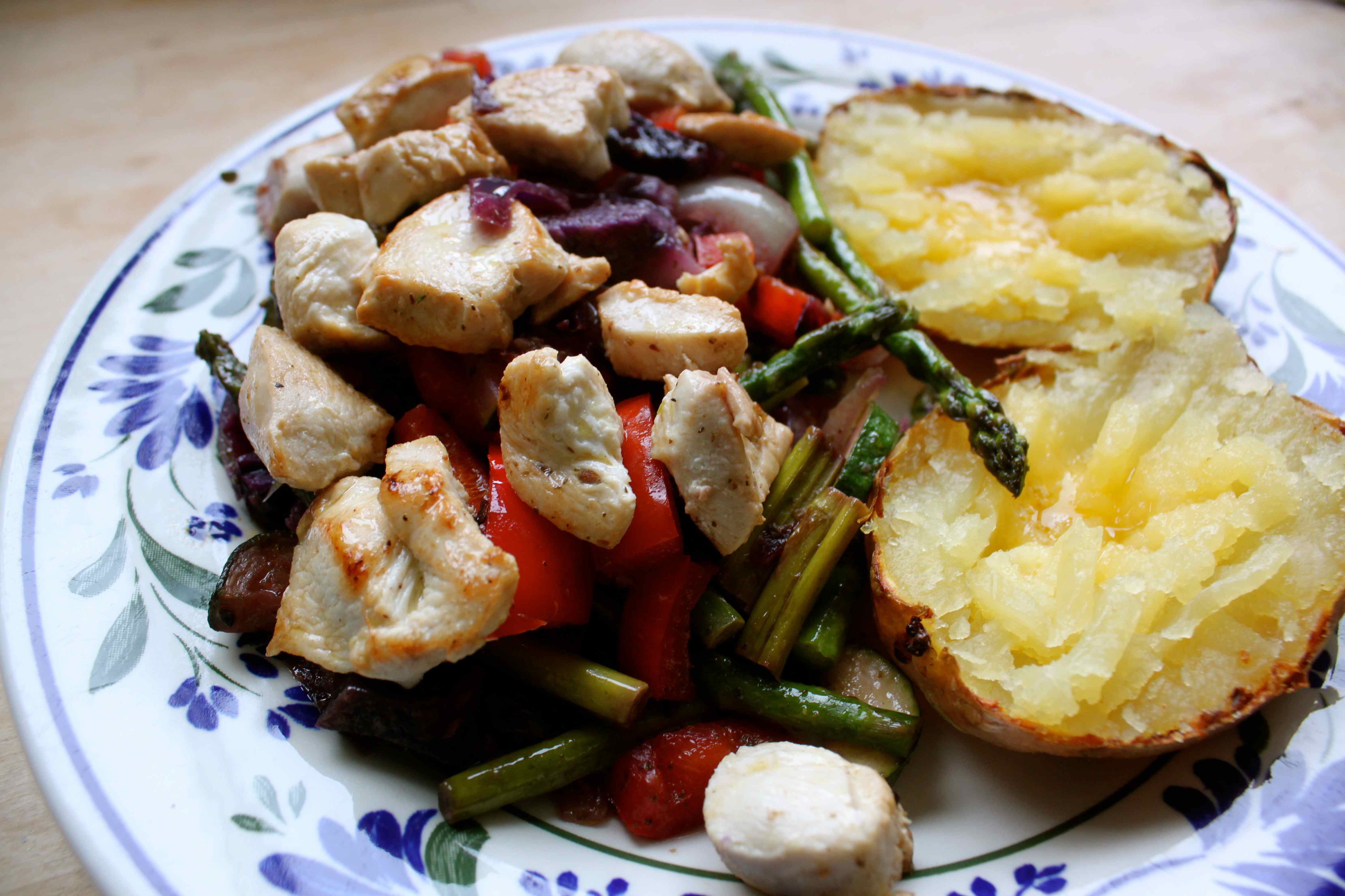 I had 2 good friends over for supper on Friday night but as I was working all day it needed to be something easy. I marinaded some chicken breasts and red onions in Rapeseed oil, minced garlic and ginger for the afternoon.