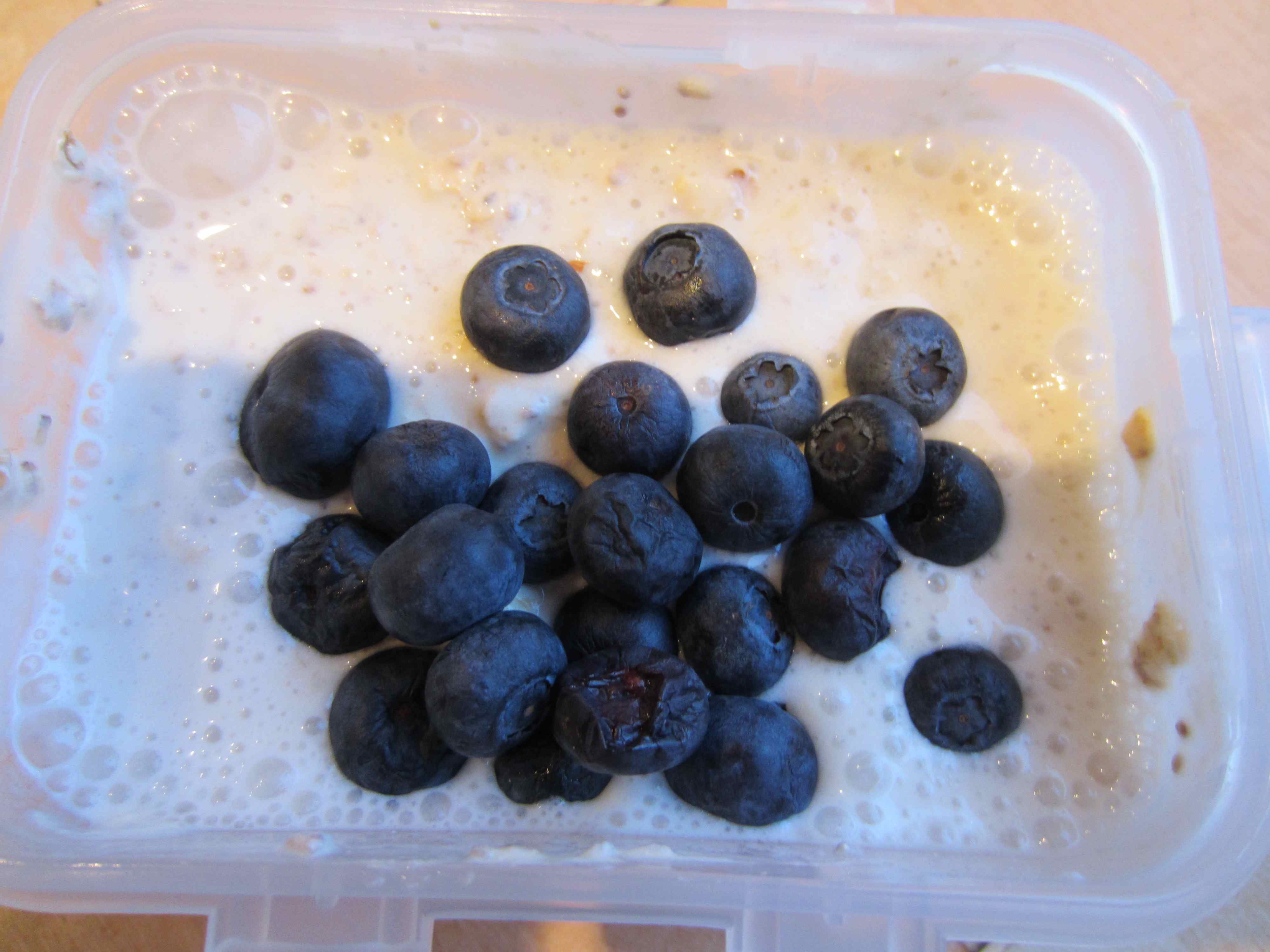 Raspberries, cashews (which I soaked for a couple of hours in water first), coconut water and natural yogurt. Deelish!